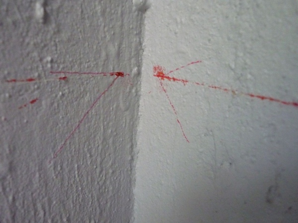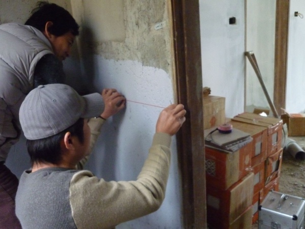用墨斗線彈出一條條的紅線方便師傅抓位置
