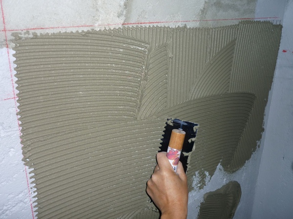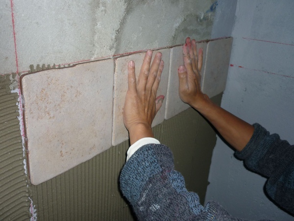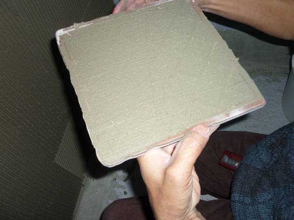 磁磚背面也要抹上一層薄薄的溢膠泥
