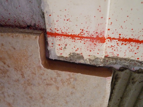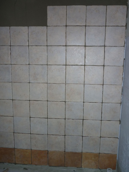 師傅說是因為背牆有做防水層 溢膠泥乾的較慢