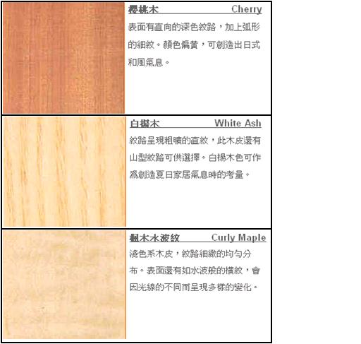 最後靠惱中想像的完成畫面初步決定浴櫃門板: 櫻桃木, 白楊木, 楓木