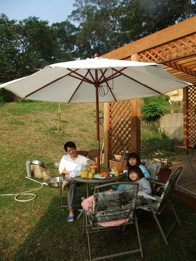 上個月網購的中型遮陽傘搭上圓桌是不錯 唯一缺點就是空間太小