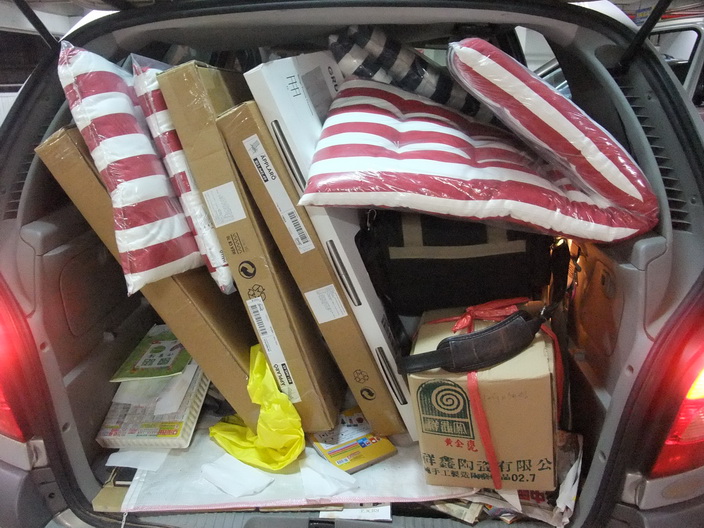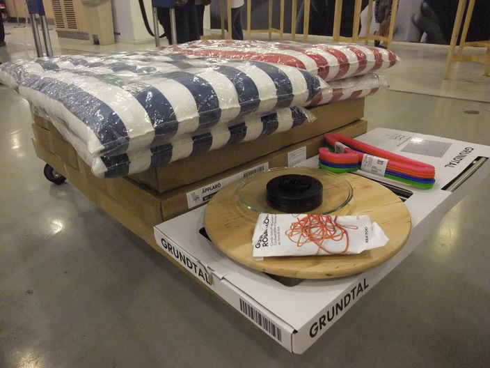IKEA戰利品: 戶外長桌, 椅子*4, 椅墊*4, 旋轉木盤, 毛巾架, 兒童衣架, 切蛋器, 還有丹麥草莓管糖