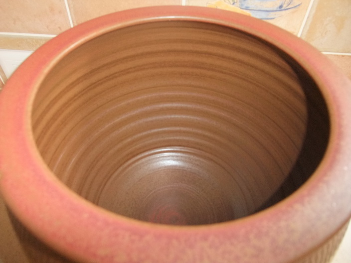 看上它的是手工拉坯 (內部有一圈一圈的紋路)